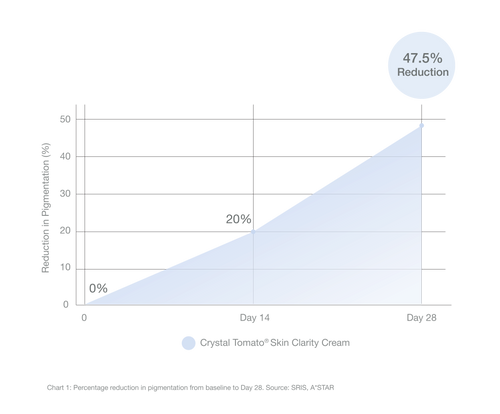 • Clinical trial results demonstrate that Skin Clarity Cream reduced pigmentation by 47.5% at Day 28.