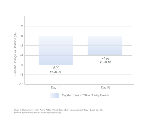 • Clinical trial results show a measurable reduction in skin-aging AGEs (Advanced Glycation End-products) - harmful compounds that accelerate skin aging - observed after just 14 days.