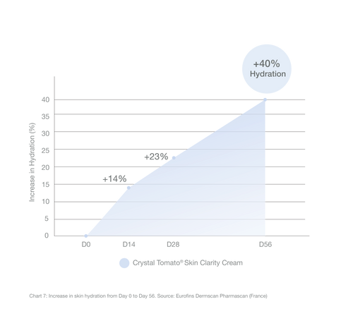 • Clinical trial results demonstrate a 40% increase in skin hydration by day 56, supporting plumper, dewier skin with long-lasting moisture.